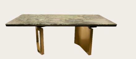 —The tabletop is crafted from exquisite emerald stone, known for its high hardness, purity, and durability.