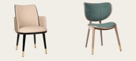 —Metal legs, black and gold/brown and gold color schemes, understated luxury.